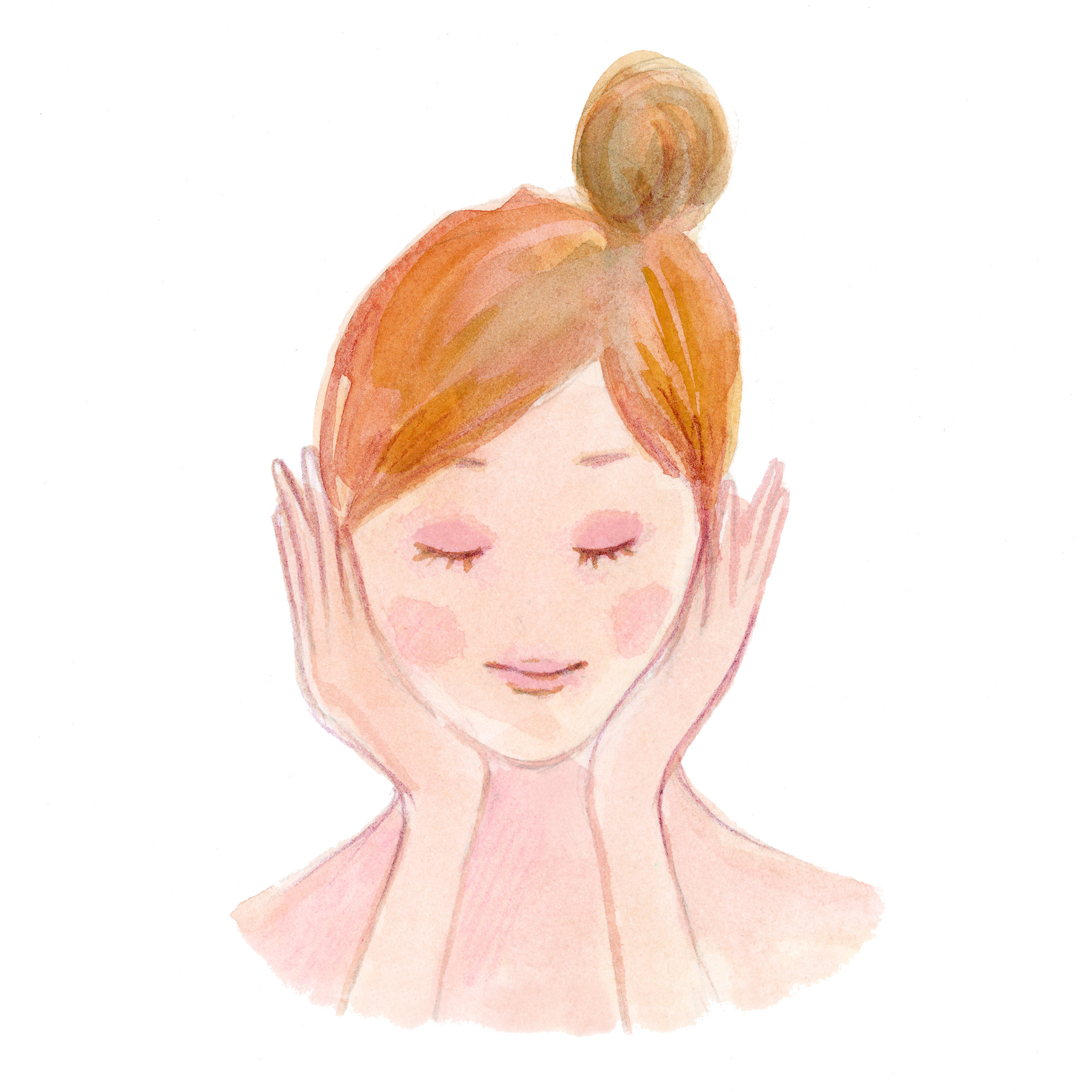 女性の顔_洗顔Sui-Sai手描き水彩イラストフリー素材集。