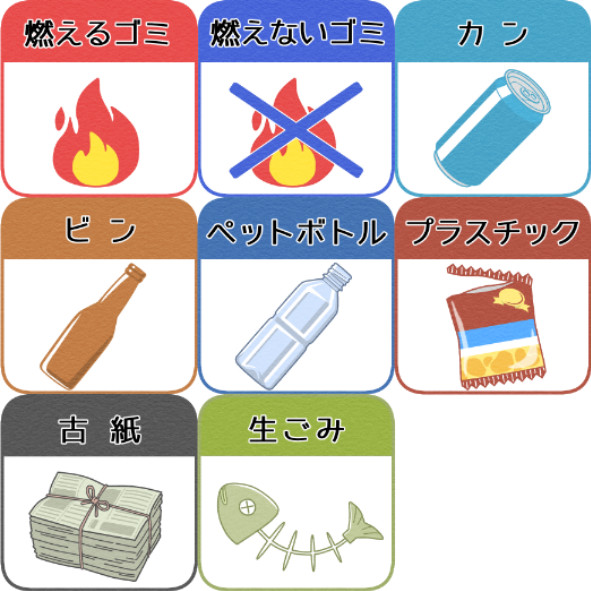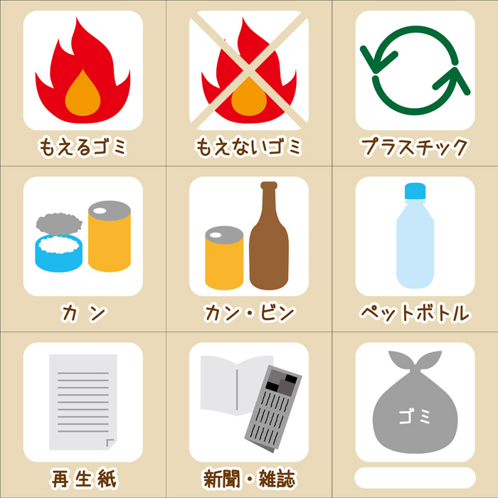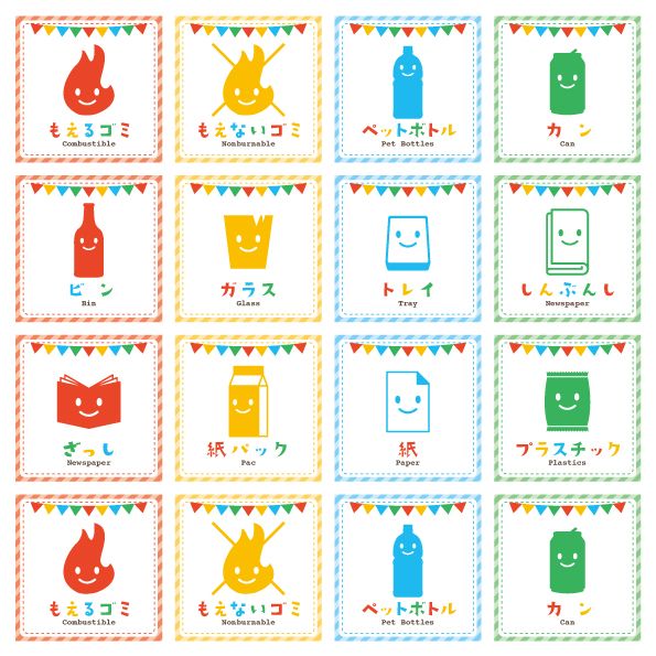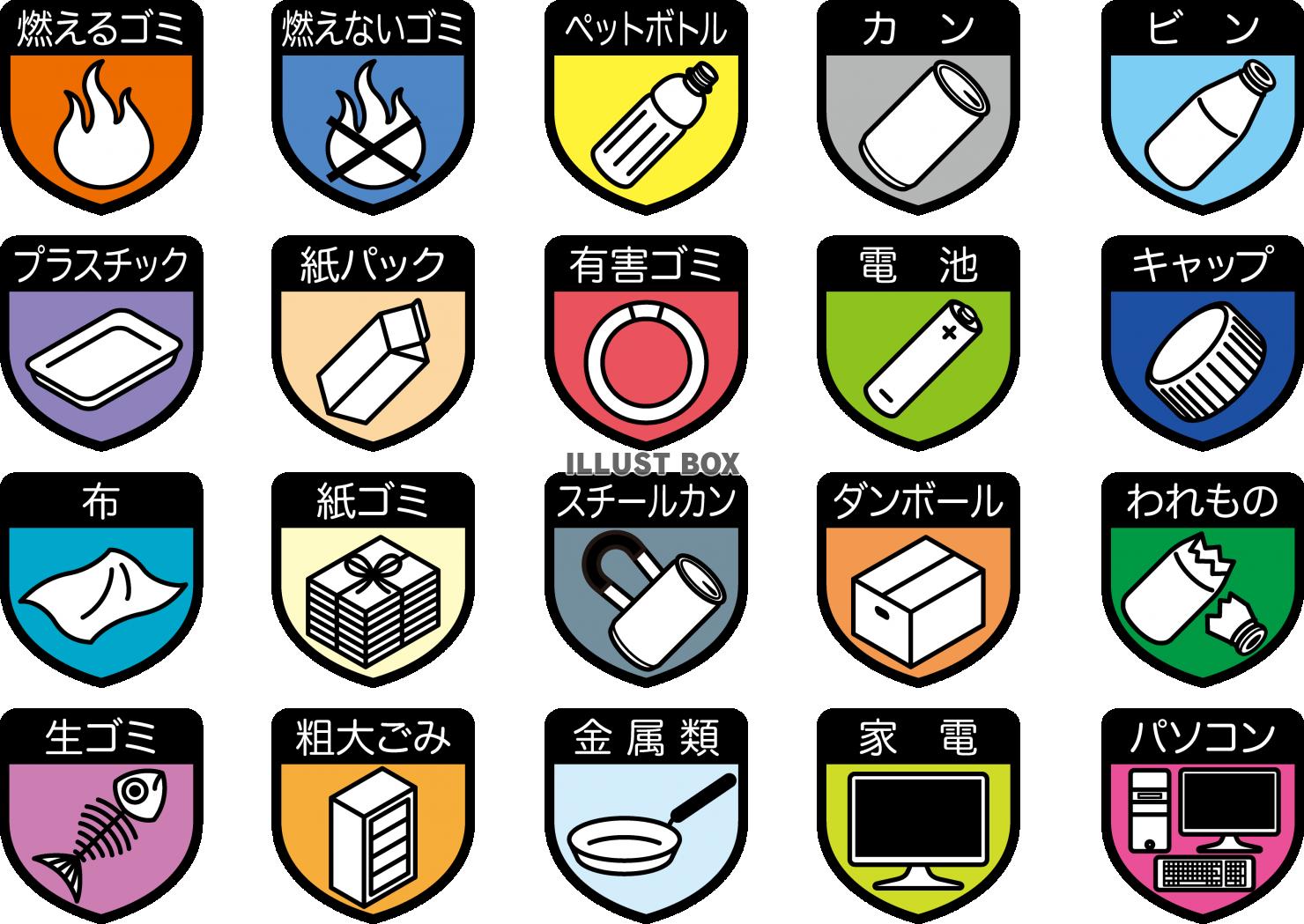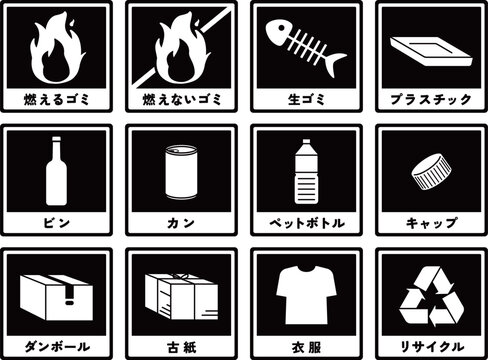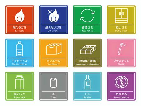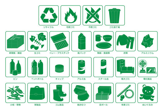 ゴミ分別・リサイクル マーク・アイコンセット:イラスト無料。