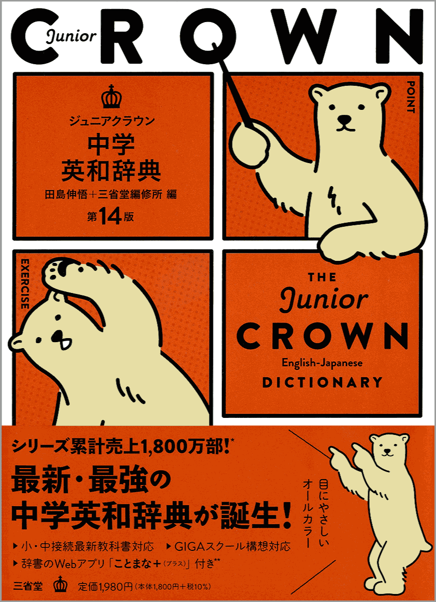 ジュニアクラウン中学英和辞典 第14版 英語辞典-英和- 辞書は三省堂 ことまな+あり学び直しウェブサービスあり教科書対応クラウンシリーズふりがな付きカナ発音付き。