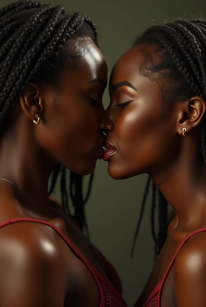 オイルを塗った黒人レズビアンのキスをするビデオ - SeaArt AI。