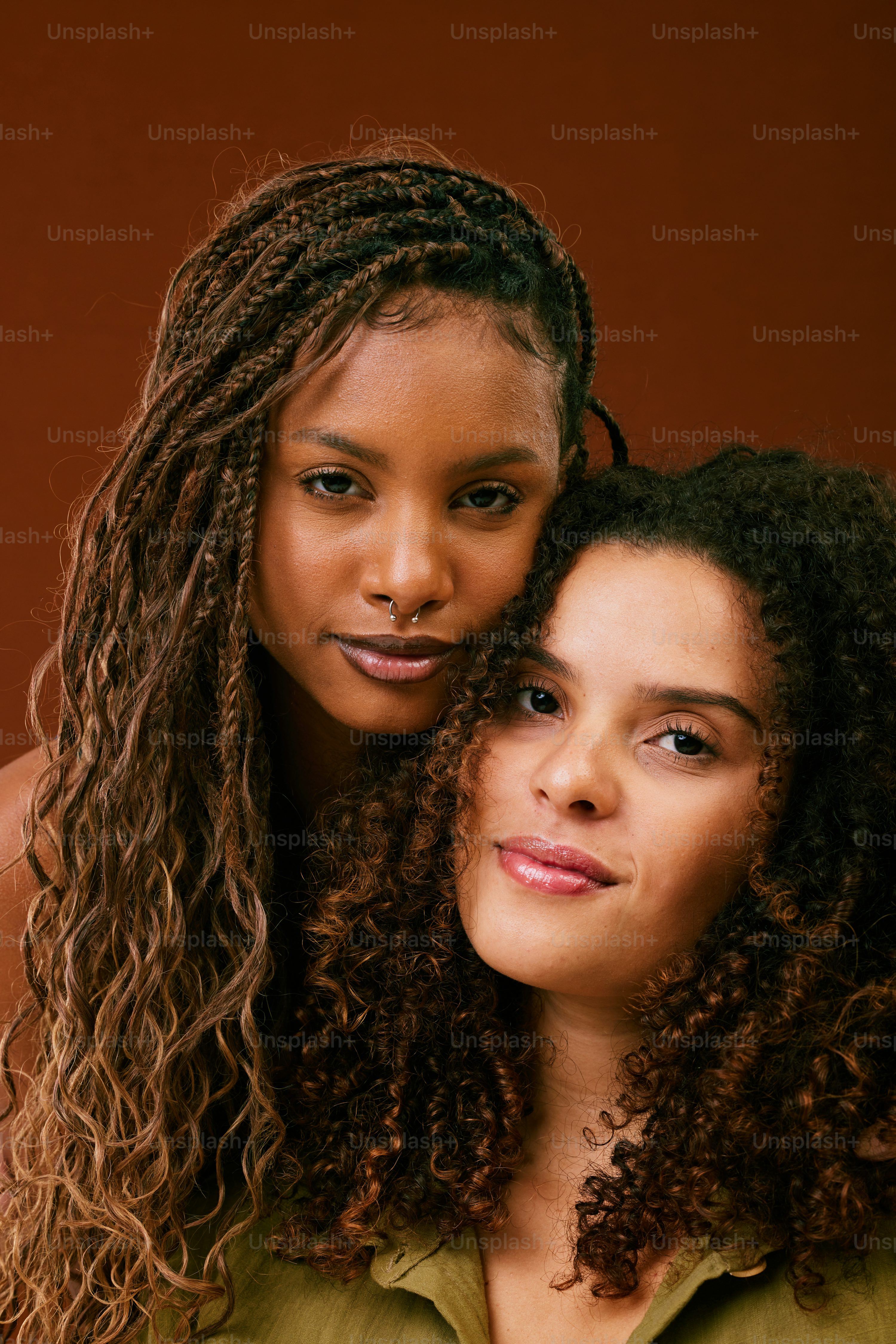 白人およびアフリカ系アメリカ人の女性の肖像画美容とスキンケアの概念異人種間友情またはレズビアン関係Premium写真。