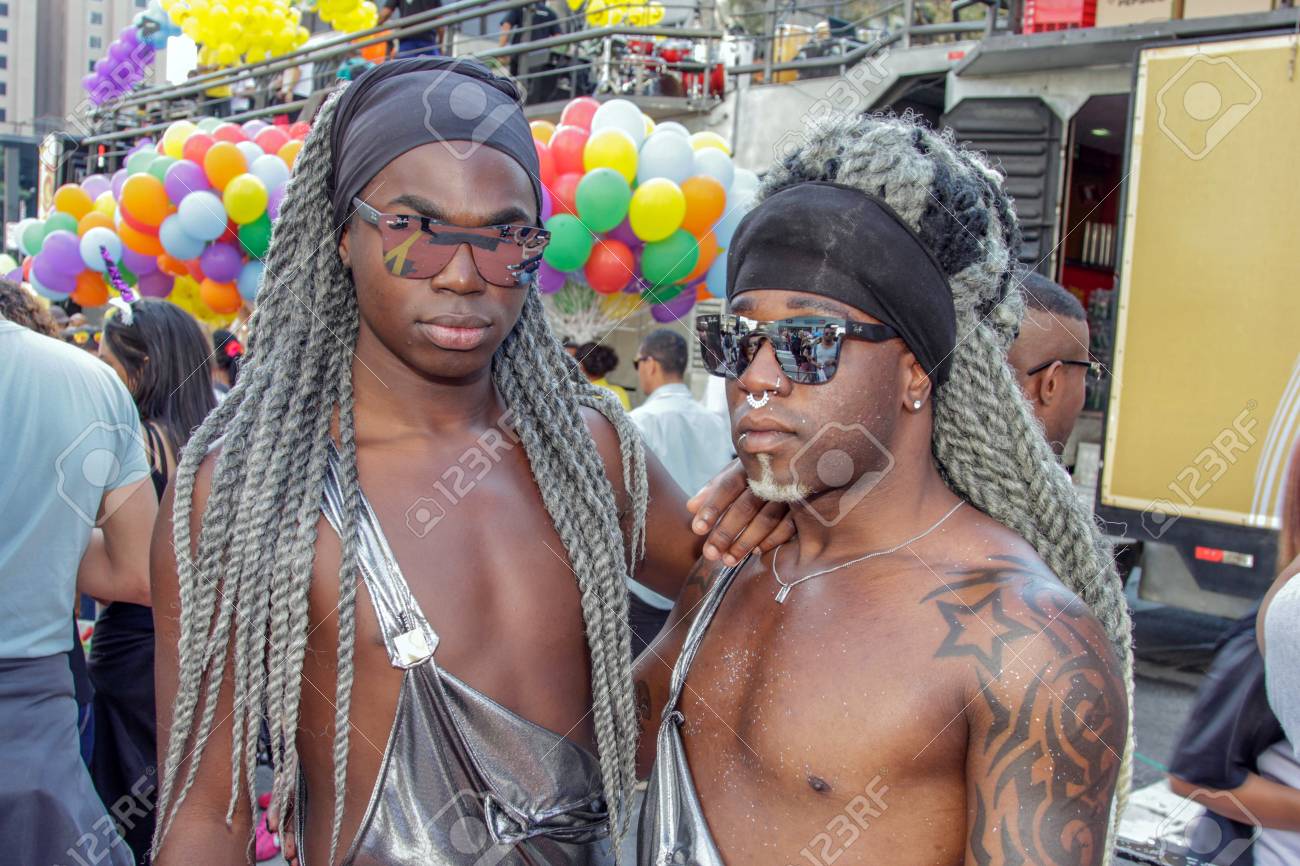 サンパウロ、ブラジル - 2017 年 6 月 18 日: 正体不明の若い黒人男性はレズビアン、ゲイ、バイセクシュアル、トランスジェンダー文化 21ゲイ プライド パレード サンパウロ州でを祝う衣装を着てください。の写真素材・画像素材 Image 80666172。