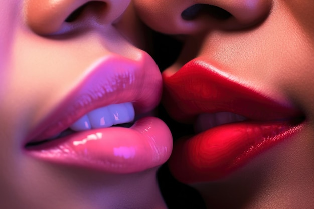 互いに触れ合う 2 人の黒人女性の唇の接写Premium AI生成画像。