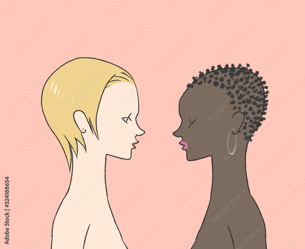 キスをするカップルのイラスト 日本人女子と黒人女子 のイラスト素材106354214- PIXTA。
