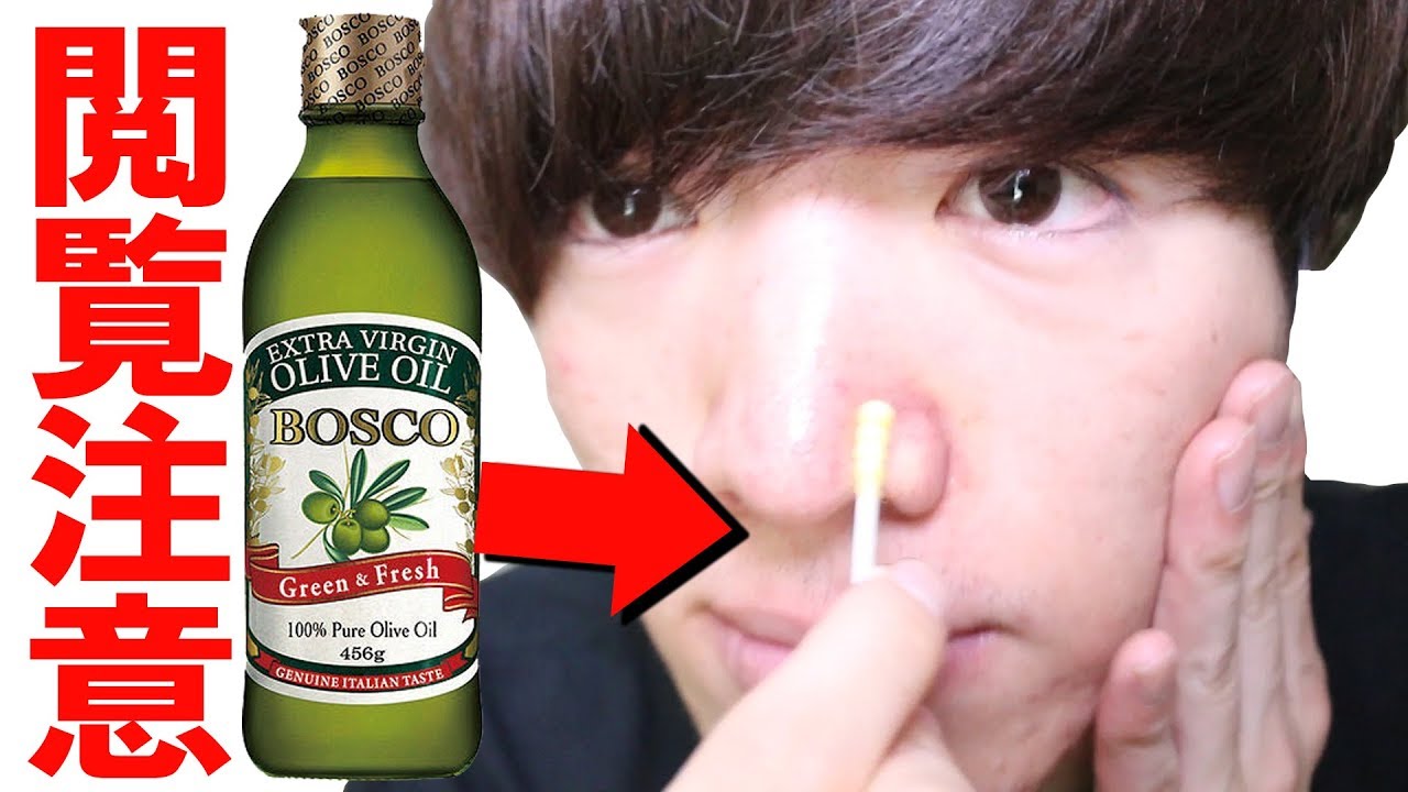 衝撃 オリーブオイルと綿棒で小鼻の黒ずみが大量に取れるらしい!! 角栓いちご鼻- YouTube。