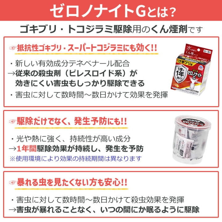 アース製薬くん煙式 3セット ゼロノナイトG ゴキブリ・トコジラミ用 くん煙剤 6〜8畳用×3個 ゴキブリ駆除 南京虫 薬剤抵抗性 テネベナール第2類医薬品 : 虫退治.COM Yahoo!ショップ - 通販 - Yahoo!ショッピング。