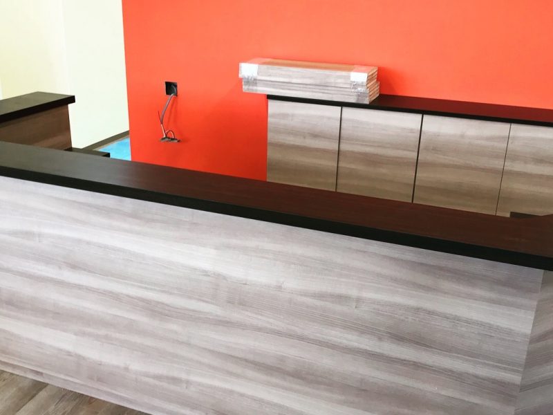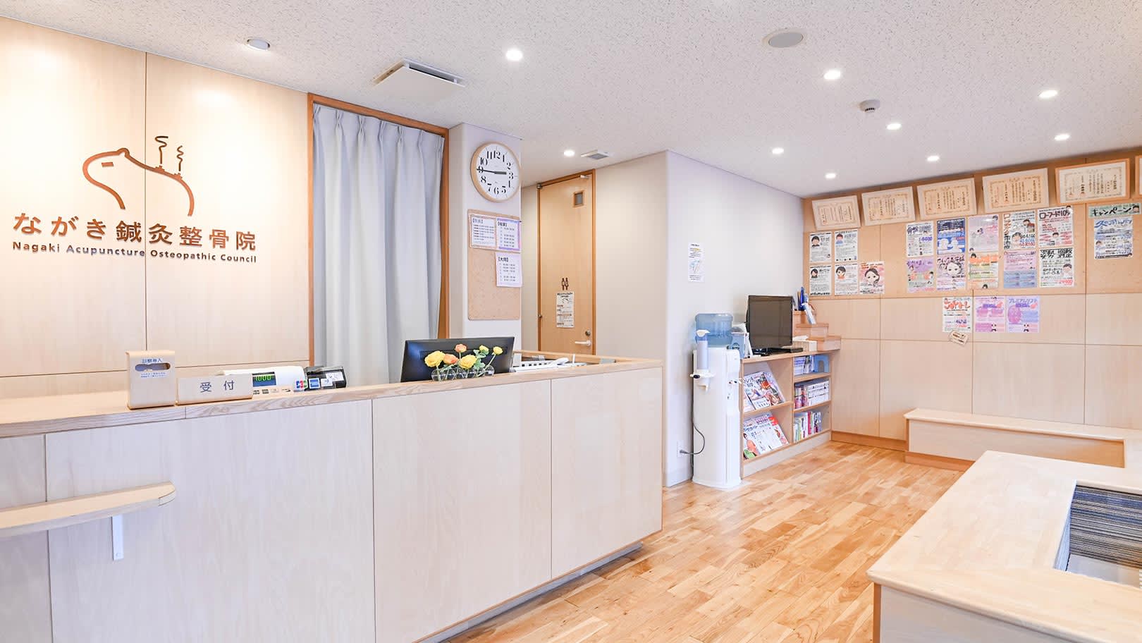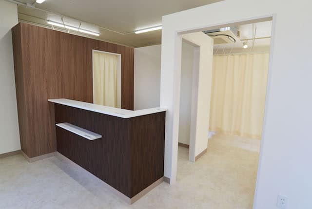 鍼灸院の受付カウンター造作事例整骨院内装センター – 整骨院開業時の内装工事ならお任せください。