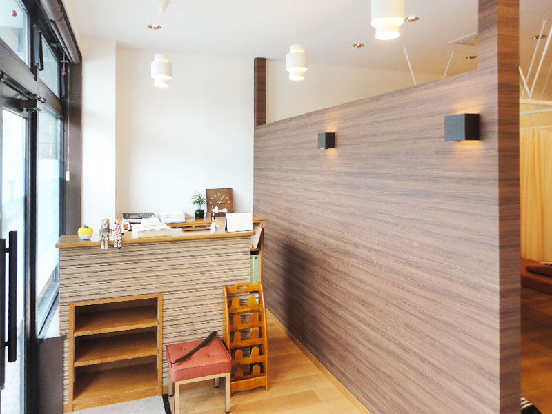 治療院さまに最適な木目調柄の受付カウンターと工夫するポイント - 整骨院・接骨院の内装・看板リラクゼーションサロンの開業をフルサポ。