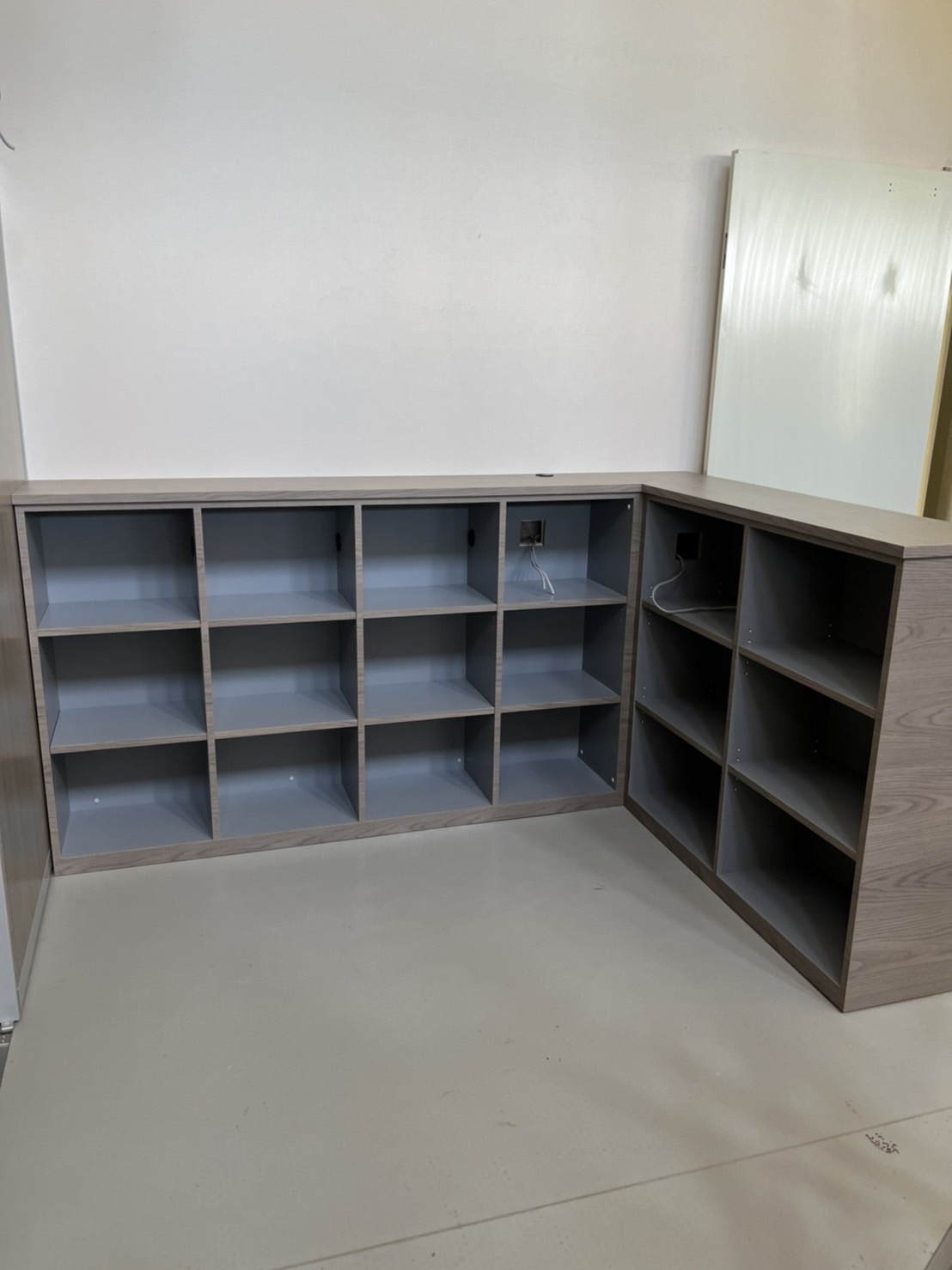 イルンゴ板橋区整骨院 改修工事 受付カウンター & カルテ棚 施工完了しました📕受付カウンターカルテ棚アクリル間仕切り靴箱下駄箱造作家具オーダー家具黒石目ベントグレーメラミン化粧板アイカ工業オルティノ店舗改修工事整骨院。
