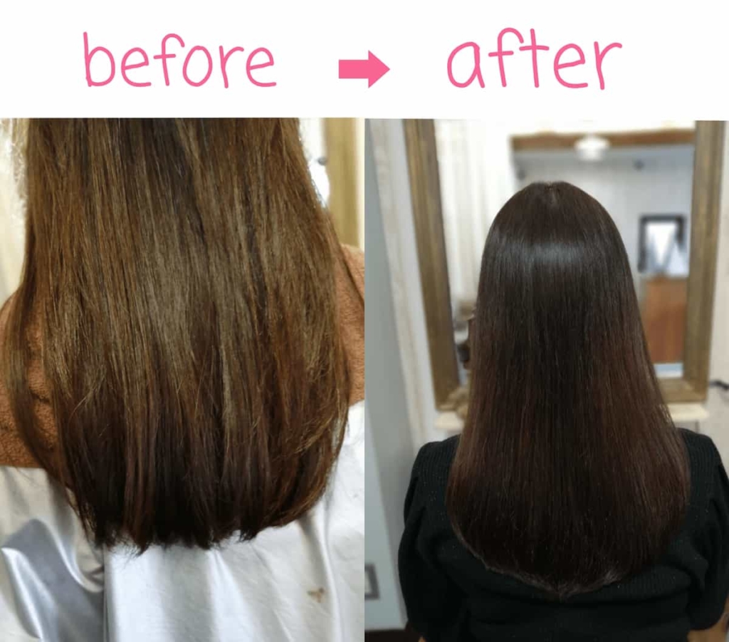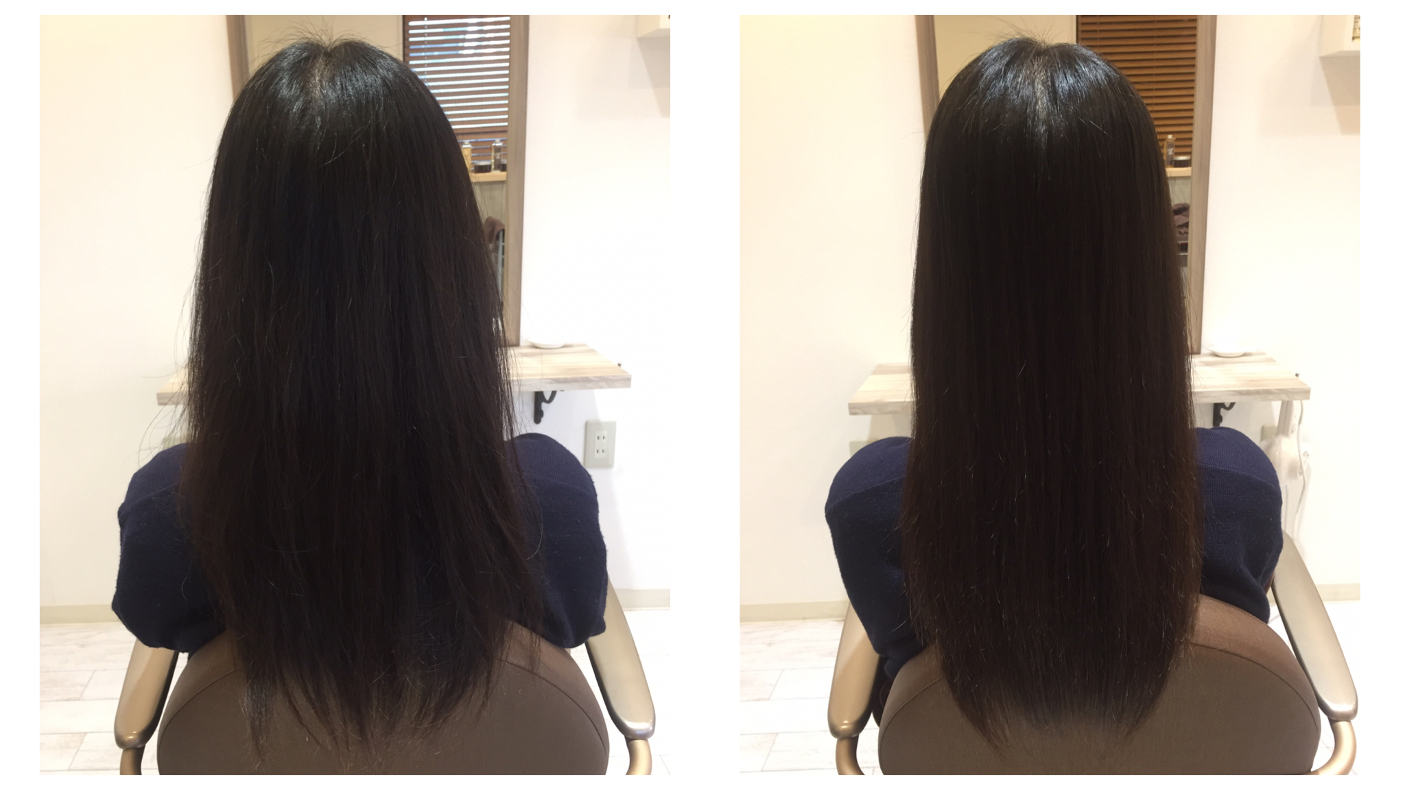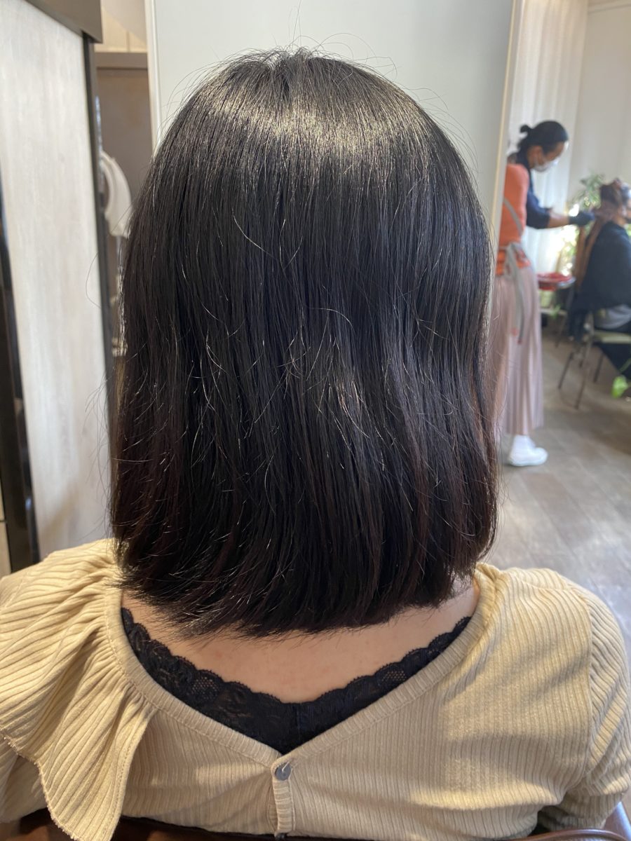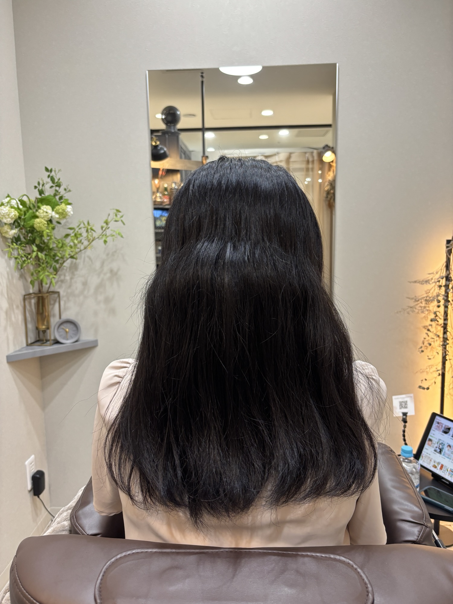 毛量が多くまとまらない髪が、スッとまとまりつつ綺麗に伸ばすことができました。郡山市の髪質改善美容室Dears ディアーズ。