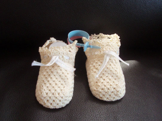 編み物作品紹介 かぎ針で編むソックス 赤ちゃん用靴下- ハンドメイド専科。