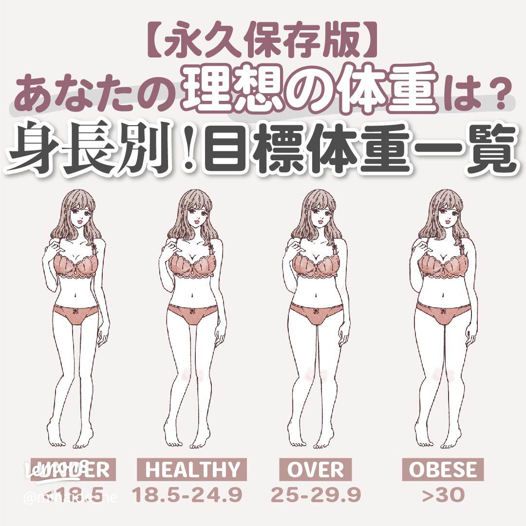 理想の体重サイズ表投稿が良かったらいいね・シェアをよろしくお願いします😆💕 見返したい方は「保存」おねがいします✨↓他の投稿も見たい方はコチラから↓ @dietrecipeintro ---------------------------- 今回は@yuru_diet_now さんのとても素敵な投稿をご紹介。