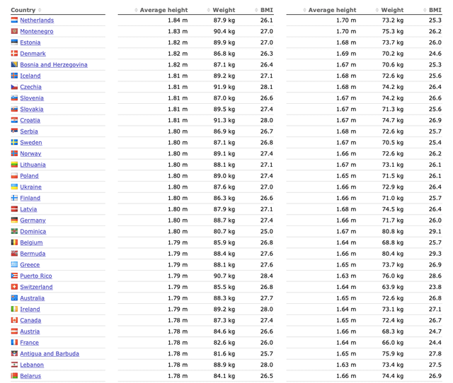 男性と女性の平均身長と体重。 詳しくはプロフィール欄のリンクから。 : r europe。