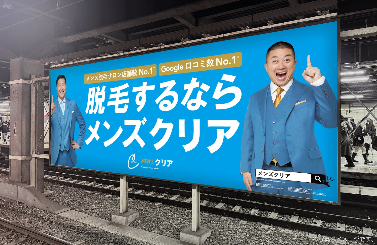 メンズ脱毛サロン「メンズクリア」は、お笑い芸人「チョコレートプラネット」を起用したブランディング広告を「ターミナル駅」に公開!株式会社クリアのプレスリリース。