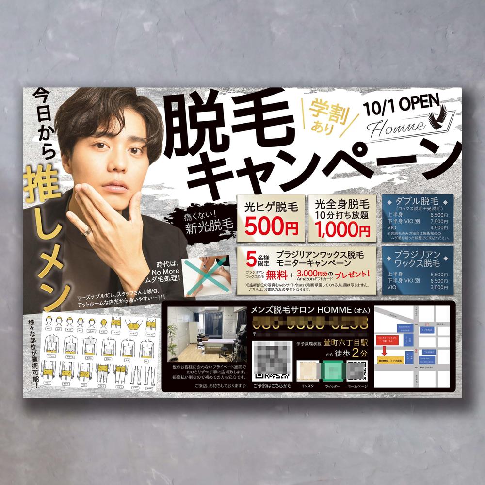 エステサロンのメンズ脱毛のチラシ作成の副業・在宅・フリーランスの仕事チラシ作成・フライヤー・ビラデザインの求人・案件なら ランサーズ。