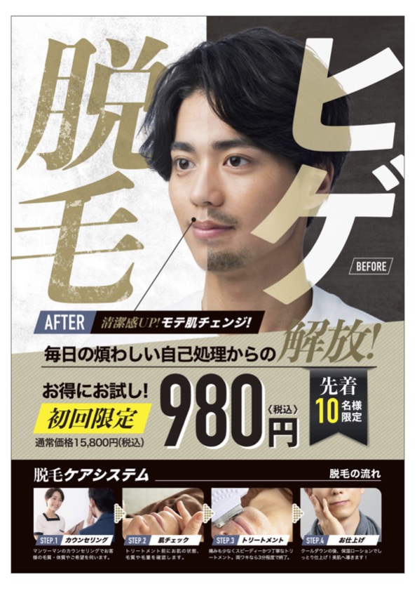 チラシ特典あり!アドポスブログを見た方にもメンズ脱毛サロン髭断 さま水戸市・ひたちなか市のポスティングはアドポス。