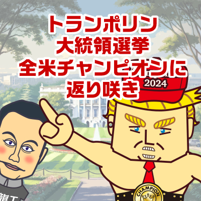 似顔絵マンガ動画 トラ第2話 トランポリンが大統領選挙全米チャンピオンに返り咲き ウーロン・マスク閣僚入り松尾益秀。