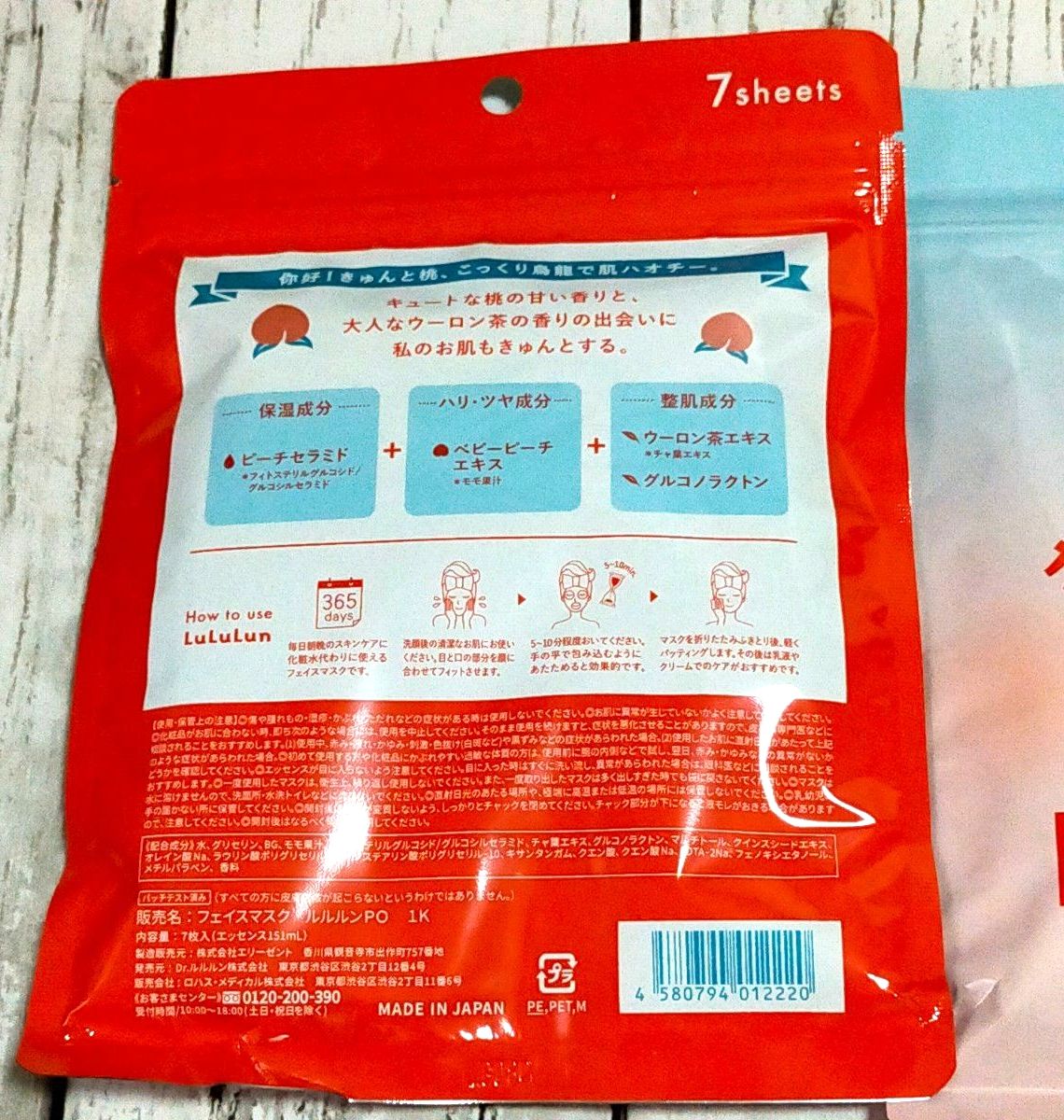 Premium LuLuLunプレミアムルルルン フェイスマスク 桃ウーロン「新品未使用未開封」2袋バラ売り不可 PLAZA限定。