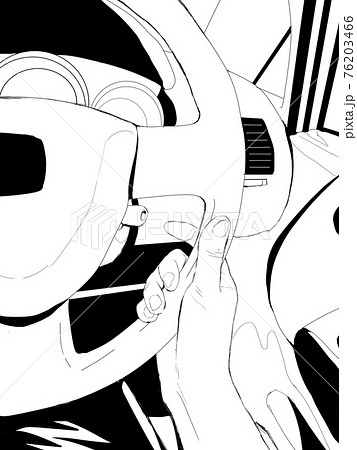 運転席でハンドルを持つリアルな手のモノクロイラスト1のイラスト素材76203466- PIXTA。