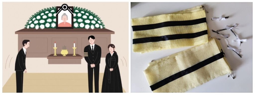 韓国 葬儀 白いリボンとは韓国の女性の喪章 Mourning badge。