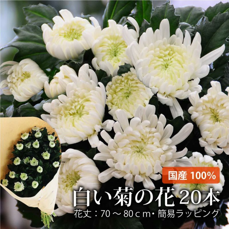 お彼岸・お盆のお墓参りに、法事法要や仏壇にお供えするお花として。国産の白い菊の花20本の切花。