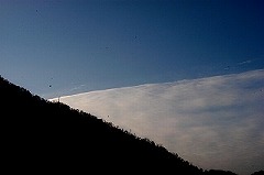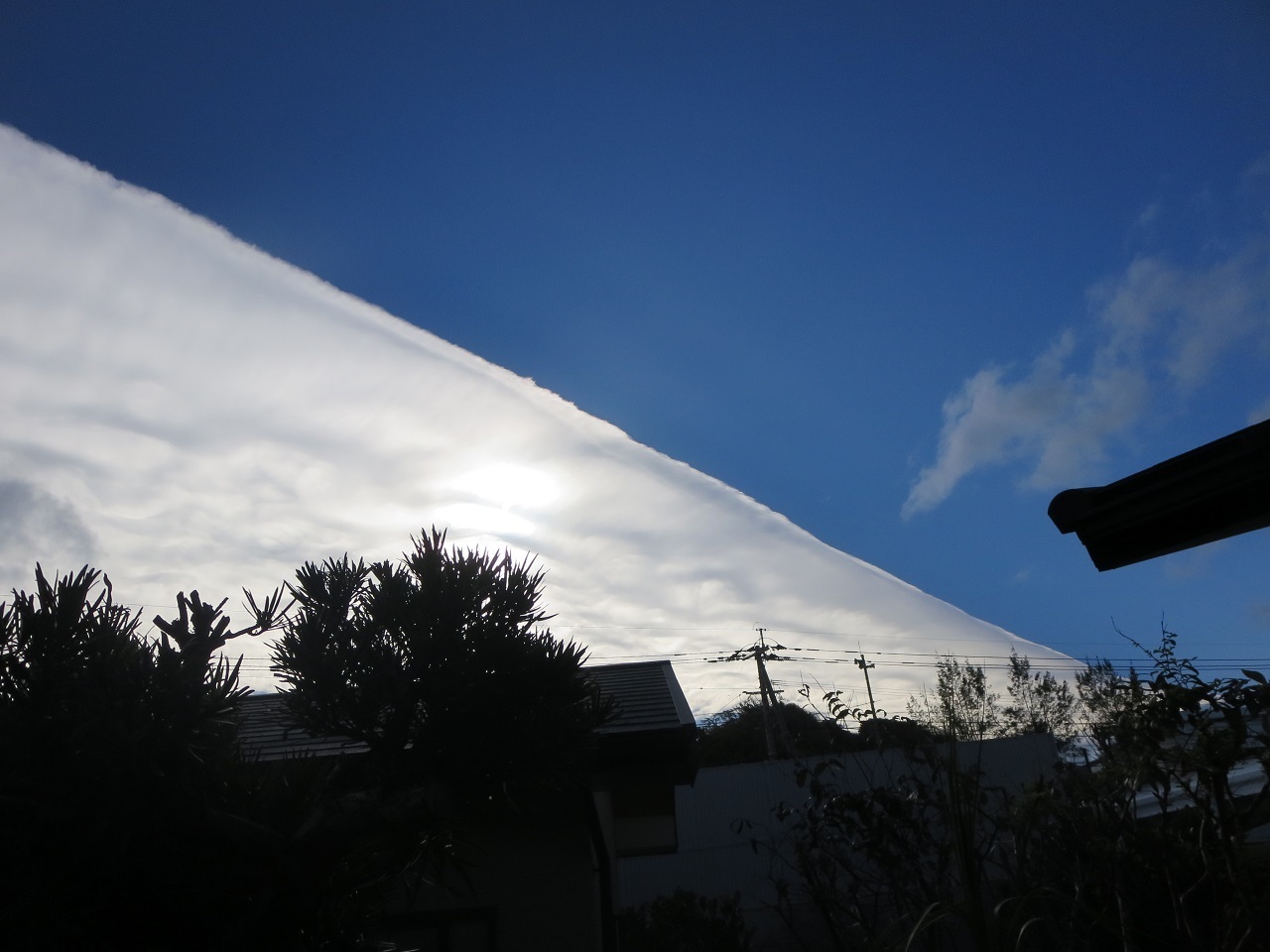 地震雲?昨日の夕方にまっすぐな一本の雲。南から北に向かって。布帛のカジュアル過プリントチュニック洋服屋「BYZZ」のブログ !ランチと旅とバイクとお花とお洋服。