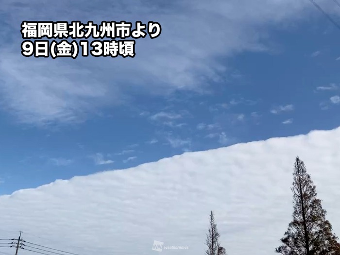 雲が半分、青い空が半分 福岡の空に雲のまっすぐな境界線 - ウェザーニュース。