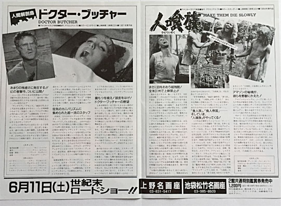 人喰族 人間解剖島ドクター・ブッチャー映画チラシホラー MANIAX希少珍品レア。