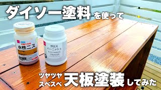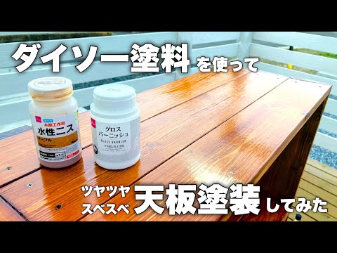 DIY ダイソーの水性ニスとクリアで収納棚の天板をツヤツヤに塗装 - YouTube。