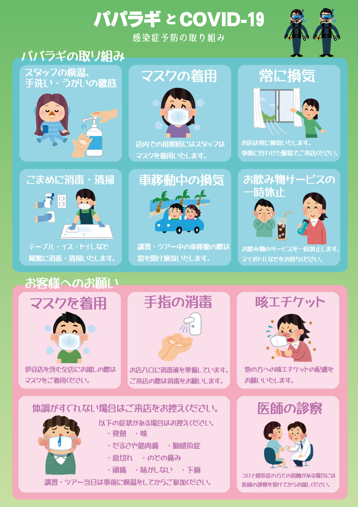 感染症予防の取り組み案内イラスト- 1NPO パパラギ“海と自然の教室”。