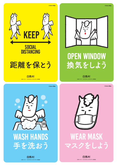 村男III世『新型コロナウイルス感染防止対策啓発用イラスト』公開しました。 白馬村。