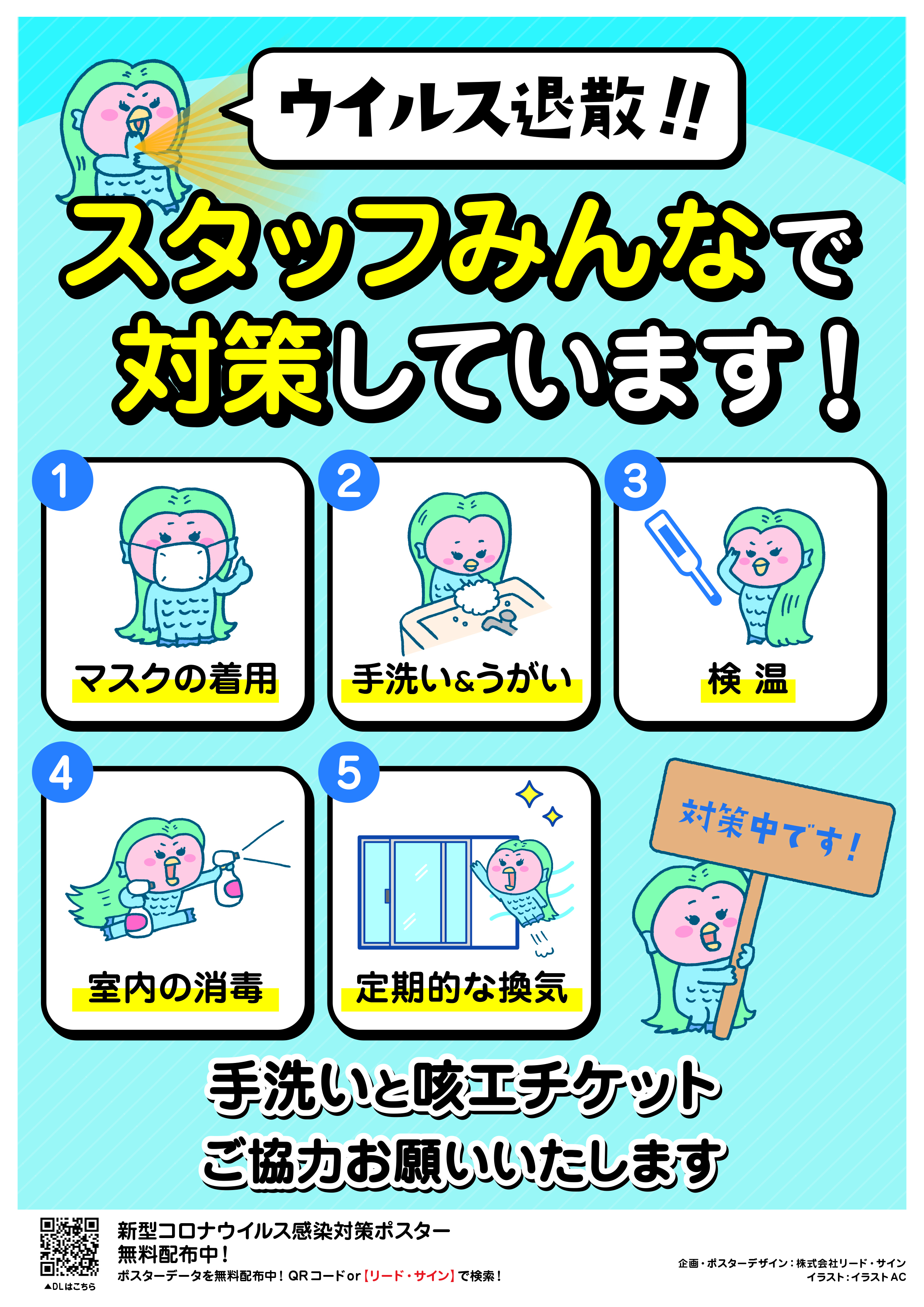 無料配布中! 企業向け新型コロナウイルス対策ポスター&ポップ ダウンロードホームページ・リーフレットデザイン制作のリード・サイン。