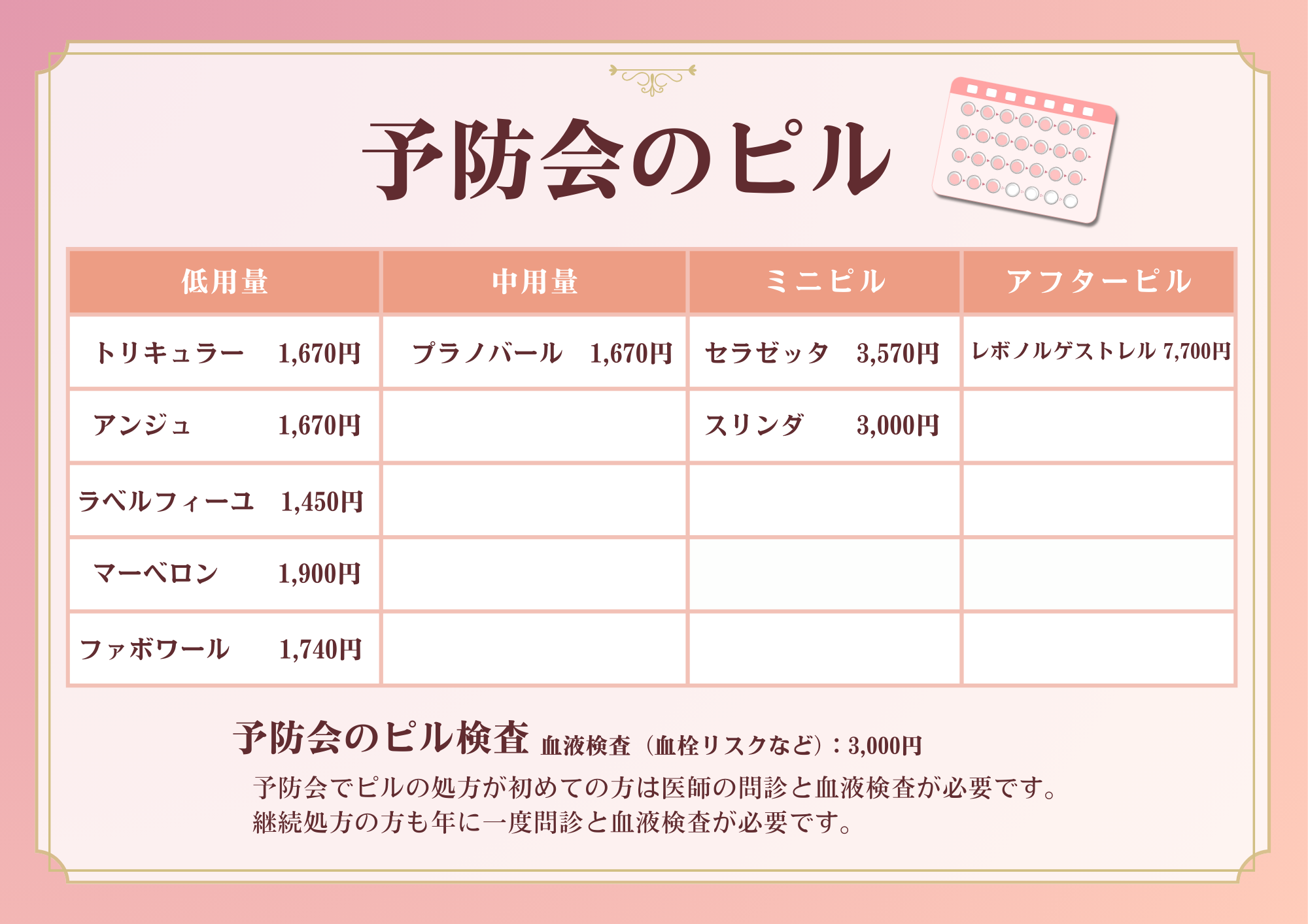 ピルの種類や副作用についてシュシュレディースクリニック戸田公園。
