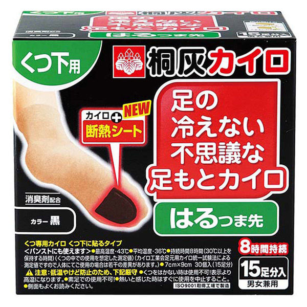 Amazon桐灰カイロ くつ下用 甲に貼る 黒 15p 違和感なく歩ける 8時間持続 15足分入 桐灰 足2個セットノーブランド品使い捨てカイロ。