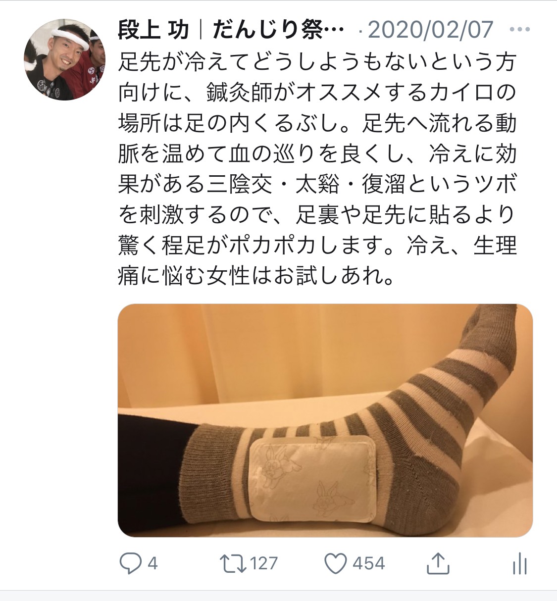 季節に合った過ごし方の提案。足が冷える秋冬に知っておきたい、鍼灸師だんじょーが推奨するカイロの貼り方。だんじり祭鍼灸師・段上 功のブログ。