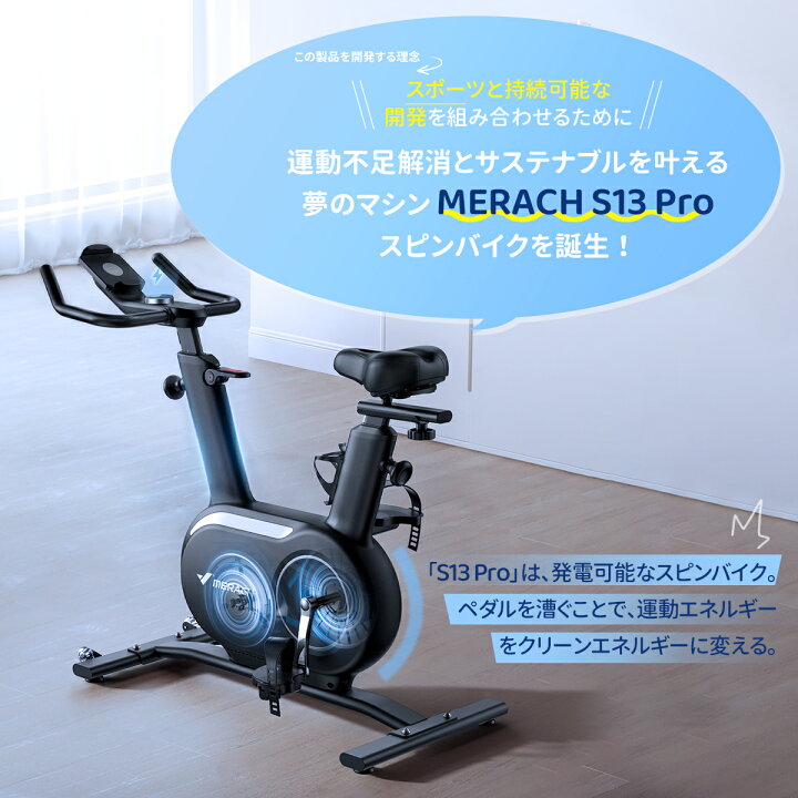 楽天市場 ◇20%OFFクーポン配布中◇ 自己発電式・アプリ連携 スピンバイク フィットネスバイク エアロ バイク 自動負荷調整 静音 24段階負荷マグネット式 コンパクト 省エネ 家庭用 室内 バイクトレーニングバイク エクササイズバイク フィットネスマシン MERACH。