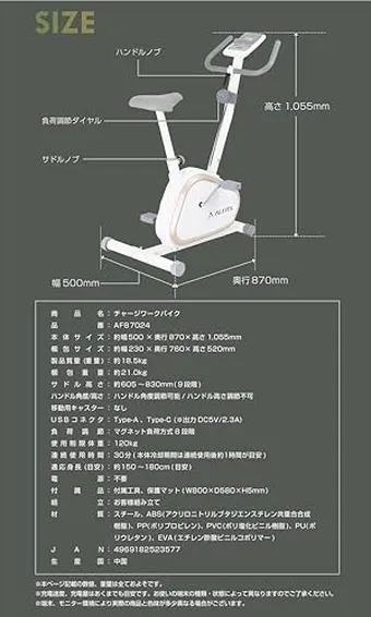チャージワークバイク AFB7024 AOAB128エアロバイク フィットネスバイク エクササイズバイク 減量 有酸素運動 運動不足解消トレーニング ミニ コンパクト 省スペース 軽量 防災 発電 静音 マグネット式 健康 運動 美容 ダイエット 減量 家庭用 ホームジム 自宅。