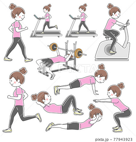 フィットネスで体を鍛える女性ポーズのイラスト素材256070396 毎月1点無料 フリー のストックフォト イメージマート。