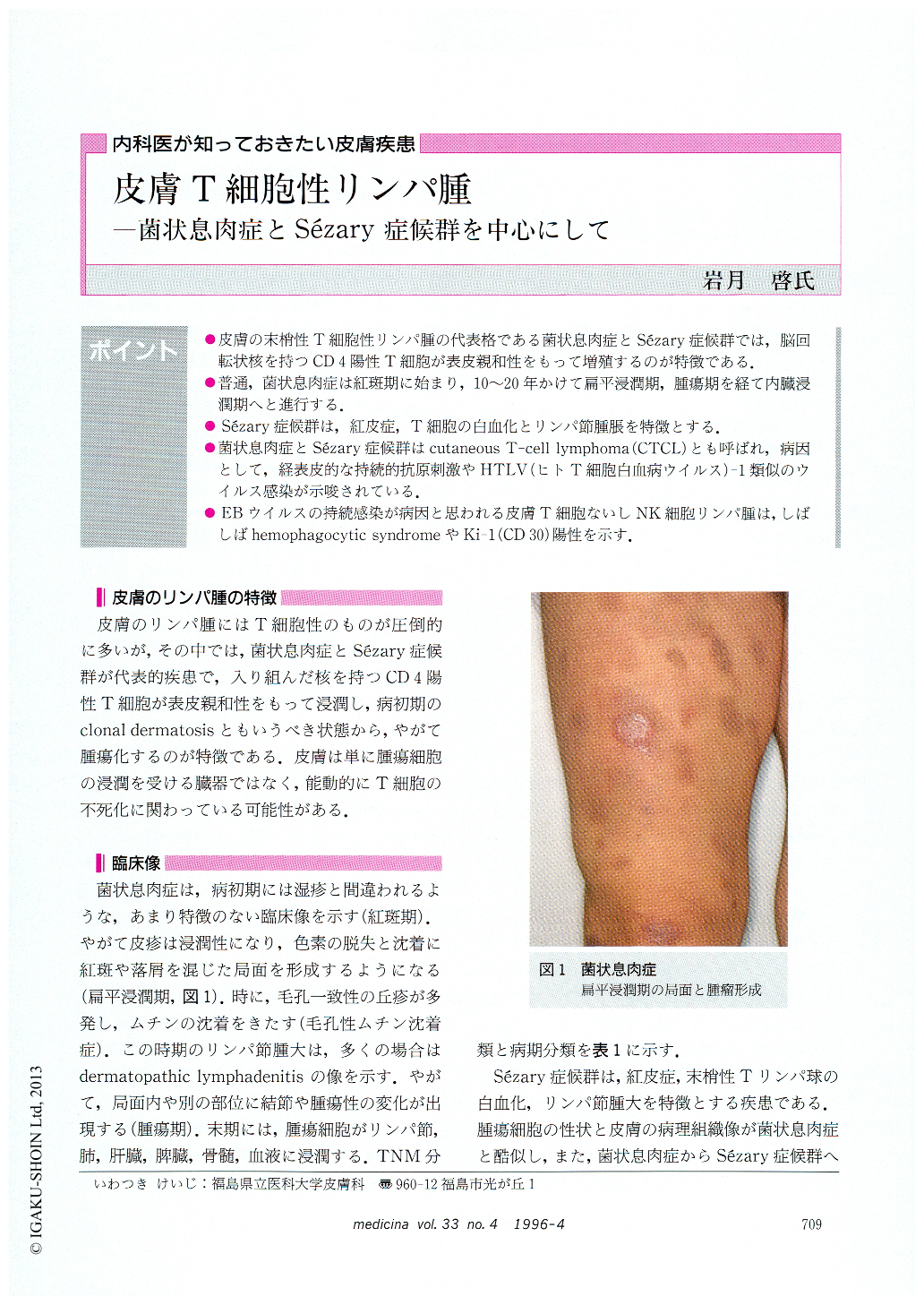 皮膚T細胞性リンパ腫—菌状息肉症とSézary症候群を中心にしてmedicina 33巻4号医書.jp。