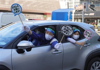 頑張ろう」と声を張り上げる支持者ら - 山口氏と上村氏一騎打ち、佐賀の方向性は 知事選告示 - 写真・画像 1 1西日本新聞me。
