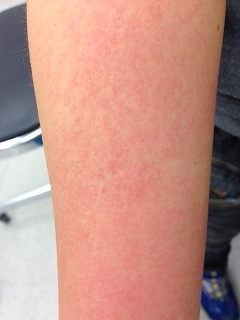 まっ赤な発疹で発熱を伴っている野田市 小児科 千葉県 こどもの花粉症 こどもの漢方 喘息 アトピー性皮膚炎 アレルギー 結節性痒疹たんぽぽこどもクリニック。