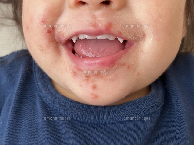 手足口病で発疹のできた幼児の口の写真素材FYI08061901ストックフォトの Qlean Market キュリンマーケット。