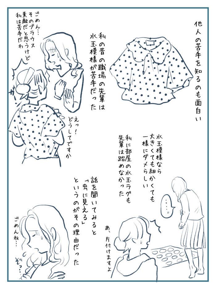 先端恐怖症、集合体恐怖症人によって違う「こわいもの」について描いた漫画がネット上で話題。