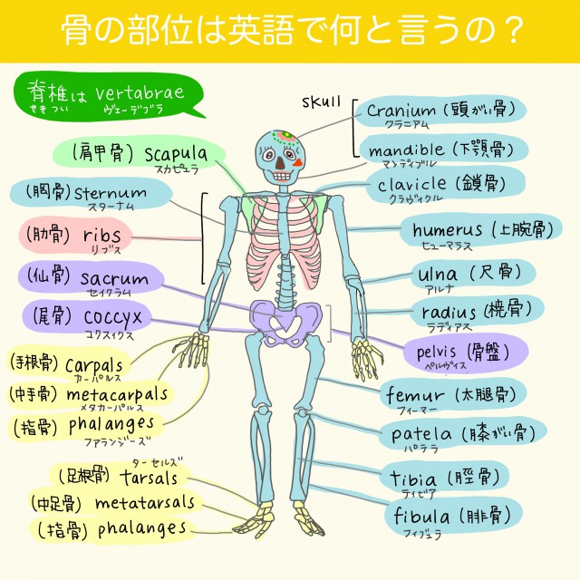 保存版! 臓器や骨の名前って英語でなんて言うの?チャコナ先生のイラストで覚えよう!vol.14レバウェル看護 お役立ち情報。