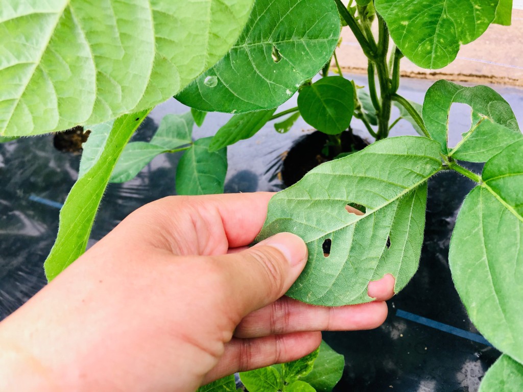 プランターの枝豆が虫食いの被害に初心者が枝豆をプランターで栽培してみた③。