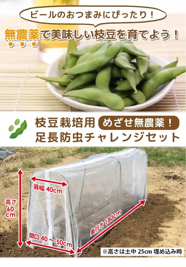 DAIM daim 枝豆栽培用 めざせ無農薬 足長防虫チャレンジセット 肩幅40cm 奥行き180cm 高さ60cm 家庭菜園 畑 栽培 防虫 虫よけ虫除け ネット トンネル 無農薬 枝豆 : ダイムファクトリー Yahoo!店 - 通販 - Yahoo!ショッピング。