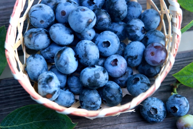 栄養たっぷりの「ブルーベリー」には、 眼精疲労や視野を広くする効果が期待できるアントシアニンや、細胞の老化を防止し、血液の循環を促すなど抗酸化作用があるビタミンE、 便秘の解消に役立つ食物繊維などが豊富に含まれています。そのままはもちろん、ヨーグルトに。