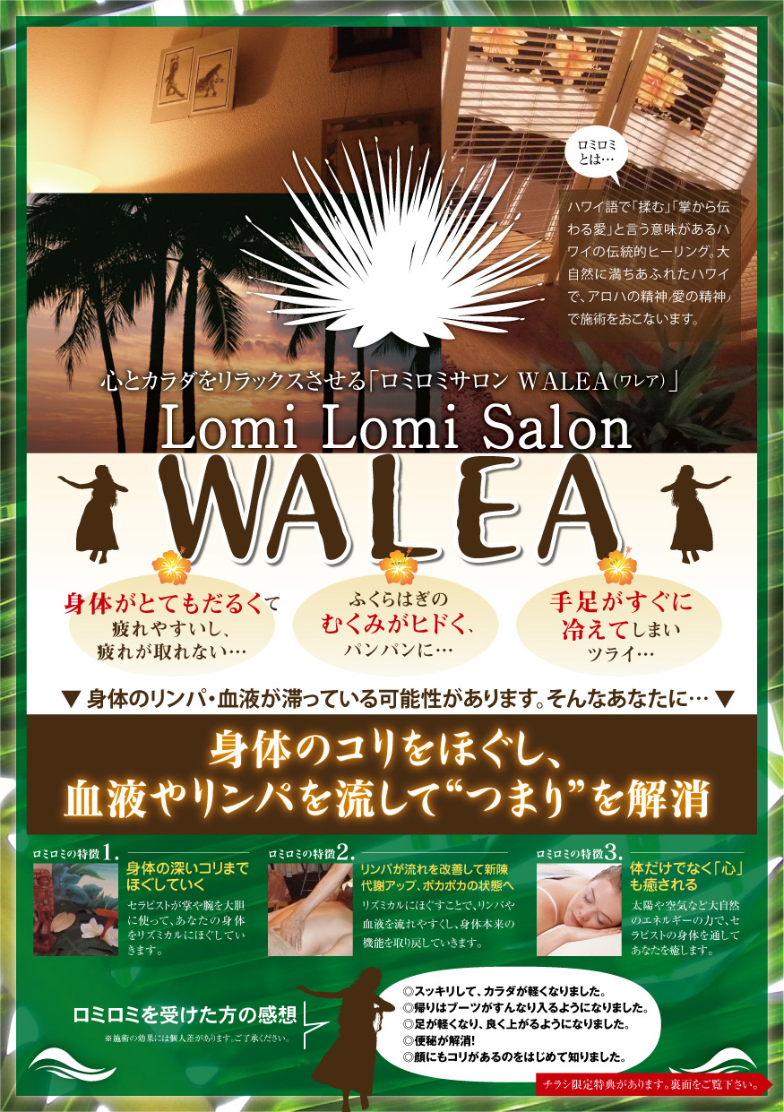 ハワイアンマッサージ チラシデザイン制作サンプル。
