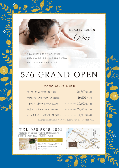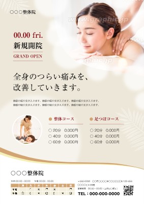 マッサージ・整体_開業・オープン_高級感チラシ・フライヤーの無料デザインテンプレート - ネット印刷グラフィック。