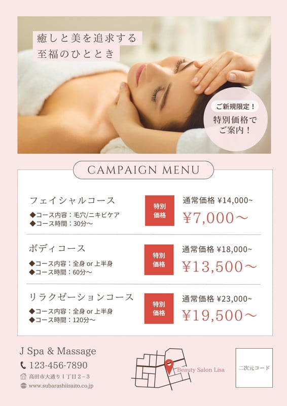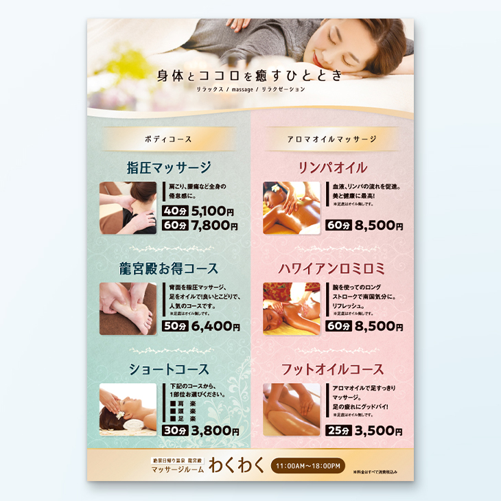 マッサージ_コースチラシ・フライヤー医療・介護・整体の無料デザインテンプレート2ページ目印刷のラクスル。